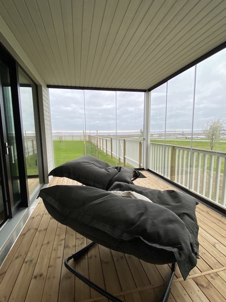 iltoihin ja tunnelmaa tuomaan Fermob valaisimia useammassa koossa, lattialle, pöydälle tai vaikka viherkasvitelineeseen roikkumaan. Kattoon laittaisin vielä Led-valoketjun. Annon ihanat Ala-viltit molempiin keinuihin lämmittämään kylmiä terassi-iltoja. Laadukas Ala-villapeitto valmistetaan Uuden-Seelannin villasta.